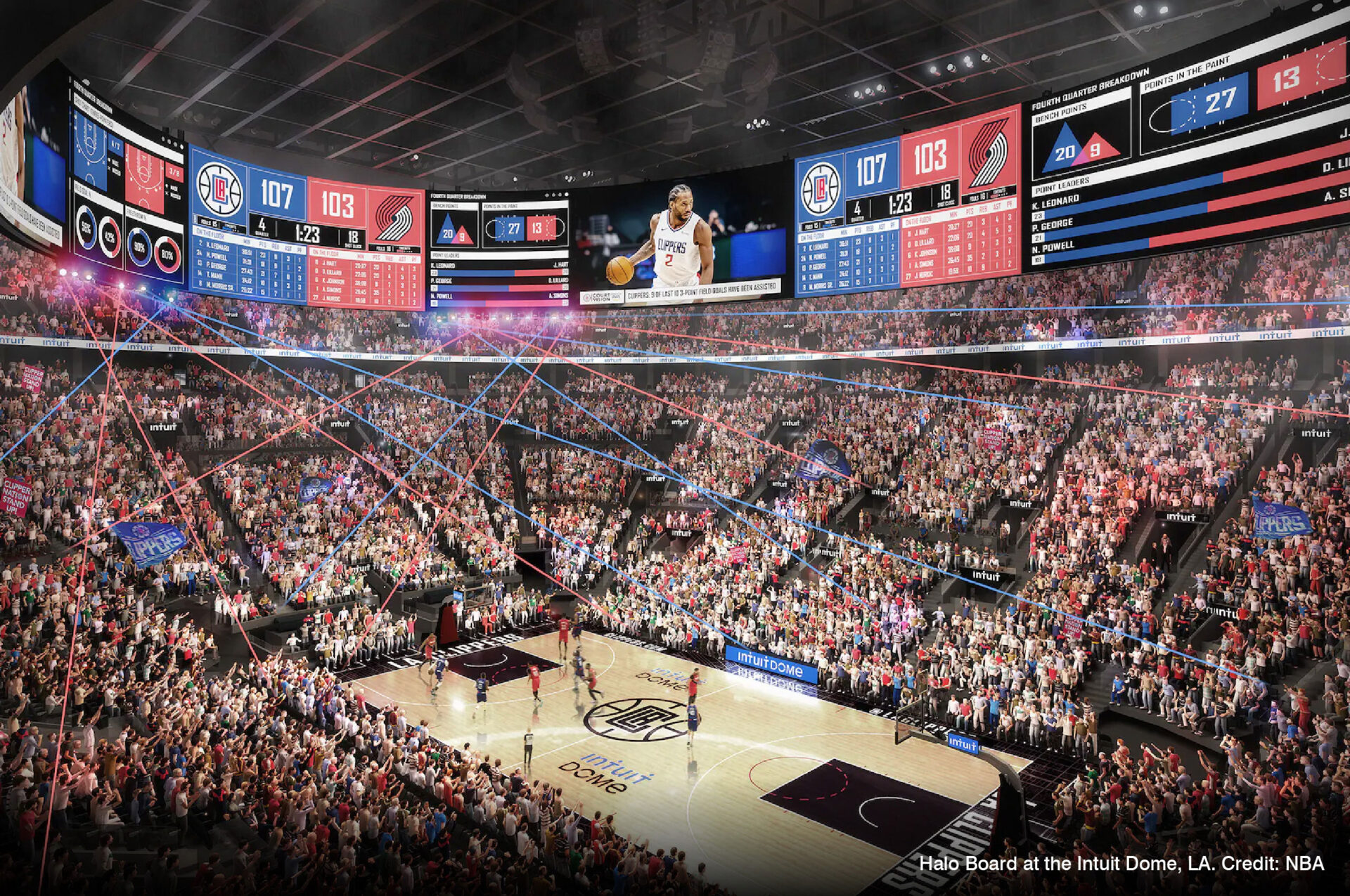 Initiatives are wide-ranging, including facial recognition for quick entry, as with Fly-Through Lanes at the Mercedes-Benz Stadium in the US, smart apps offering AR-enabled wayfinding, real-time data, video replays, custom content and direct-to-seat delivery, as at the Levi’s and SoFi stadia in California, and smart in-seat sensors, notably at the Intuit Dome in LA, where fans who cheer loudest are detected by sensors and rewarded with discounts. The Intuit Dome’s double-sided Halo Board also offers game feeds, stats, player profiles and promotions, and can be played on, as each seat comes equipped with a gaming console – similar to Manchester’s pioneering Printworks from outside the world of stadia, home to Europe’s largest digital ceiling and a large-scale interactive gaming screen.