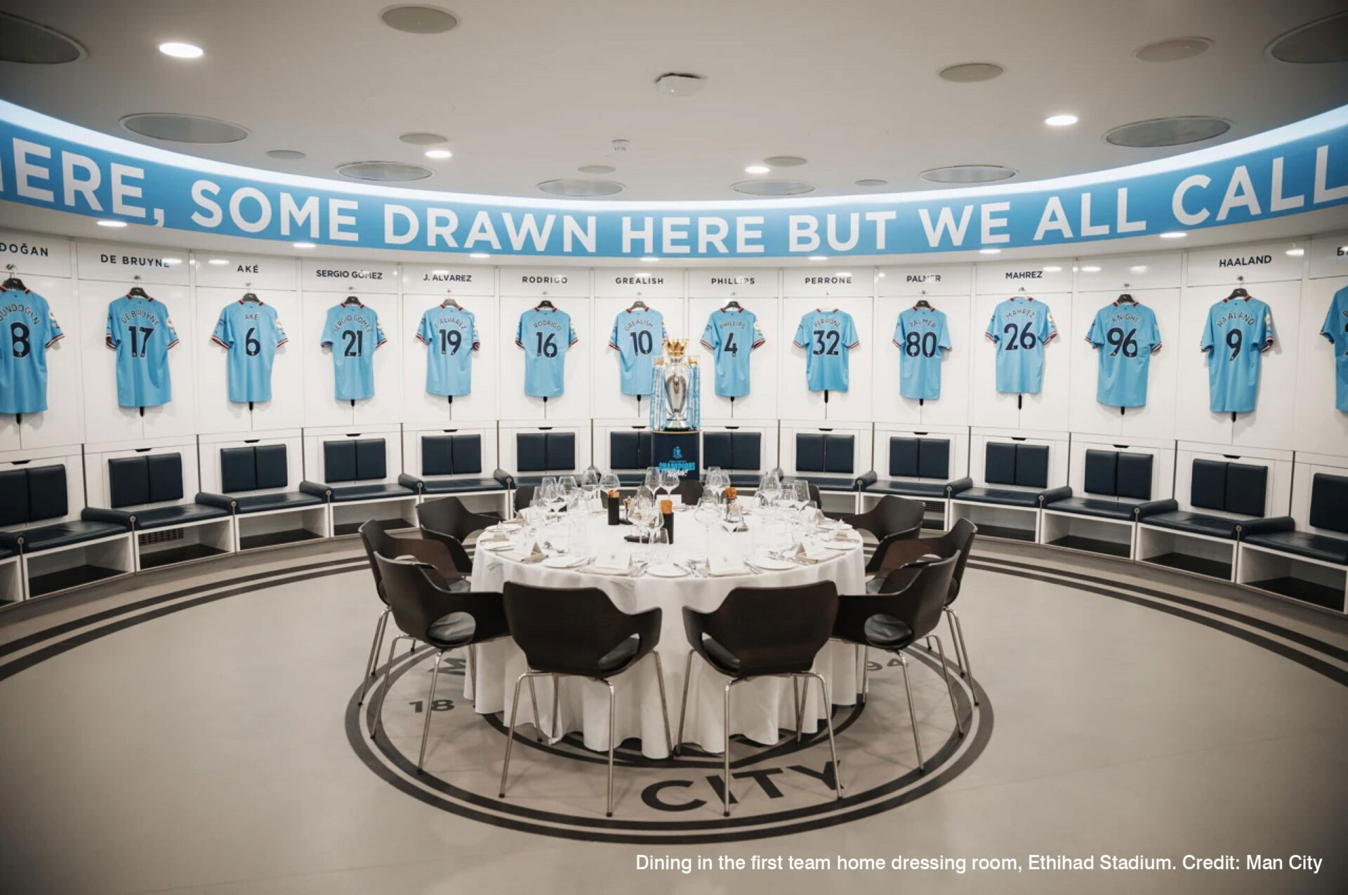Manchester City Etihad Stadium offers dining in the first team home dressing room, legends coming to your box or taking you on behind-the-scenes tours, having a personal photographer for the day, and even being able to set the corner flags and paint the penalty and centre spots on the pitch – as well as having VIP access to the pitch in the centre circle moments before kick off in front of a full stadium.